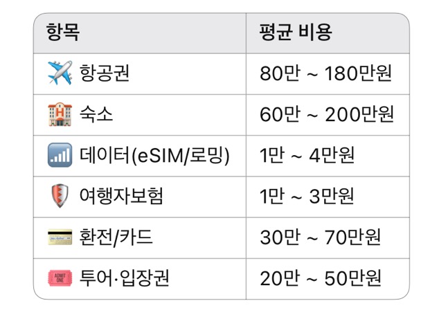 ✔ 5~7일 여행 기준 평균