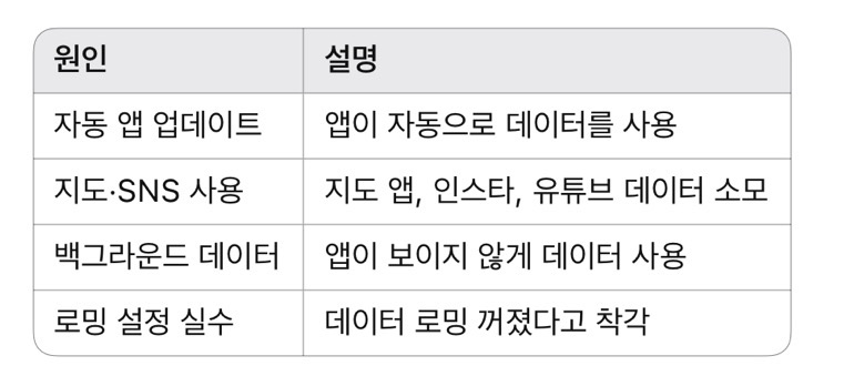 많은 분들이 데이터만 사용하면 요금이 나온다고 생각하지만 실제로는 다른 이유도 있습니다.